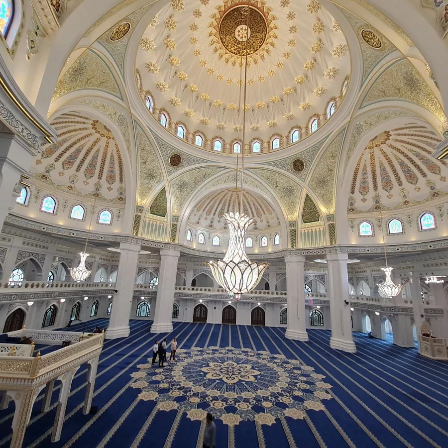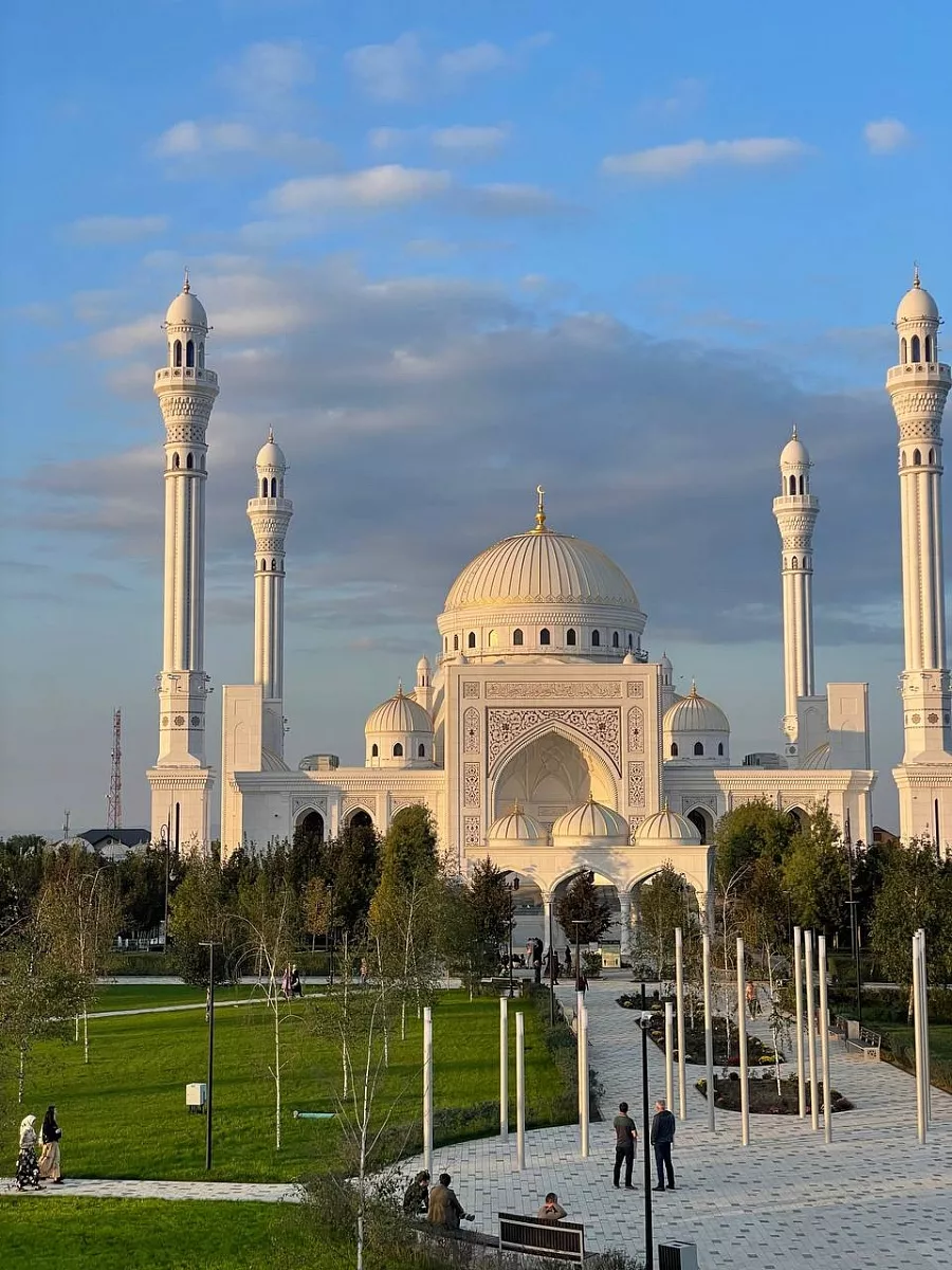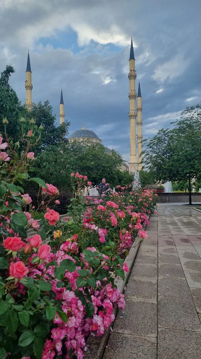 Первая локация, которая достойна нашего внимания это, конечно же, самая большая мечеть в Европе Гордость мусульман имени пророка Мухаммеда. Невероятной красоты белоснежное строение. Вы знали, что ковры туда привозили специально из Турции? На территории мечети расположен уникальный парк 12 фонтанов, 2 тысячи деревьев двадцати разновидностей, 145 тысяч кустарников и цветов, из которых 18 тысяч - это розы.