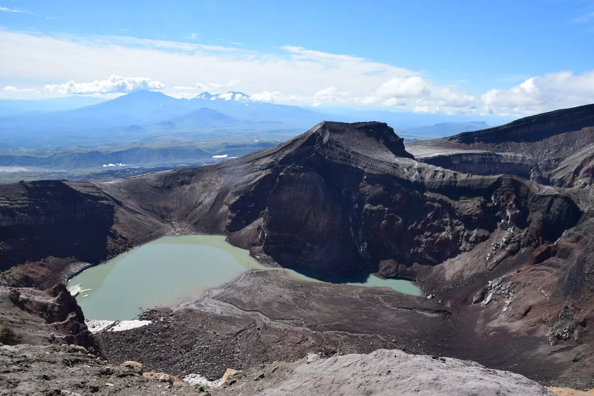 Земля. Берег с черным титано-магнетитовым песком раскинулся более чем на 40 км. Здесь, среди вулканического песка, располагаются поля шикши и брусники, шиповника и жимолости, а также других самых разнообразных видов растений.