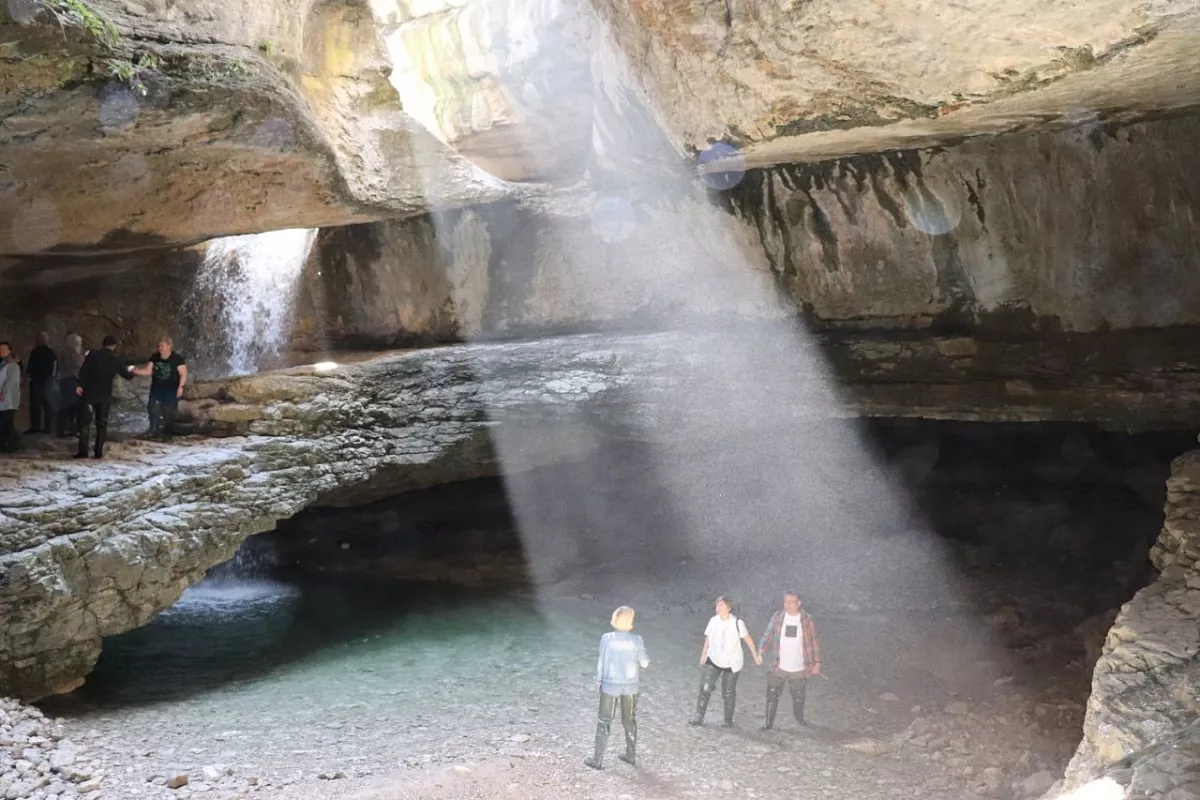 Далее поедем на единственный в Дагестане Салтинский подземный водопад. Чтобы увидеть его, нужно совершить непродолжительную прогулку. К водопаду ведет узкое и извилистое ущелье Салтинская теснина, длина которой всего 500 м. Маршрут несложный, но требующий внимательности и осторожности.