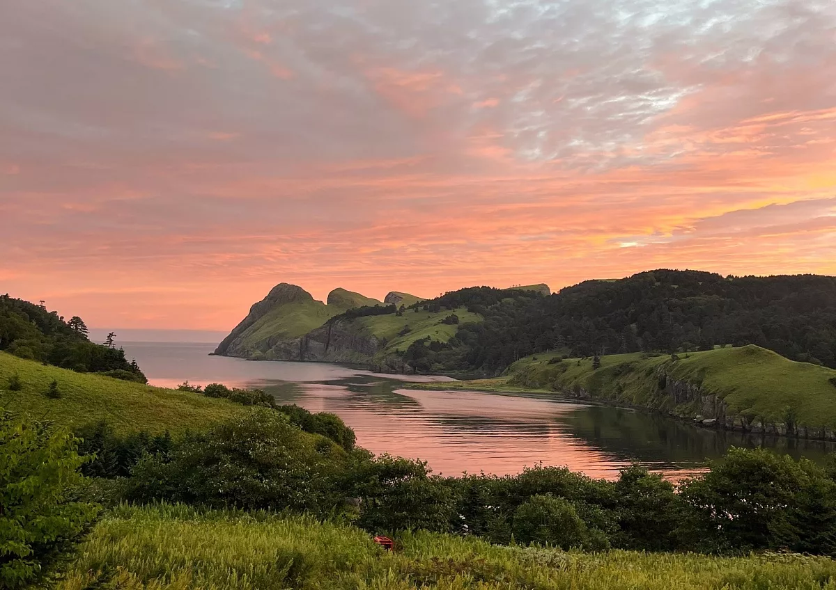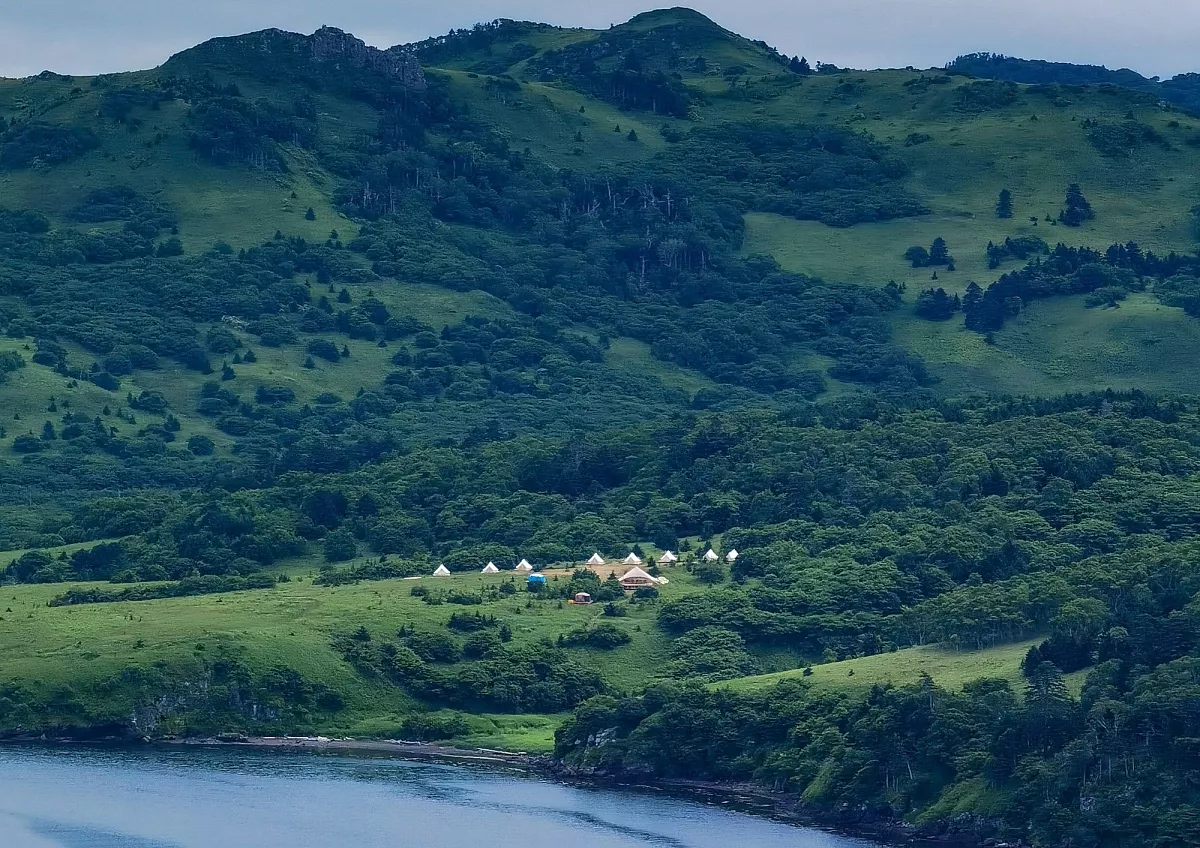 И вот нас утром встречает тот самый красивый остров Шикотан. С корабля мы попадем сразу на бал - на трансфере нас привезут в глэмпинг и оттуда отправимся на небольшую проулку к мысу Трезубец.