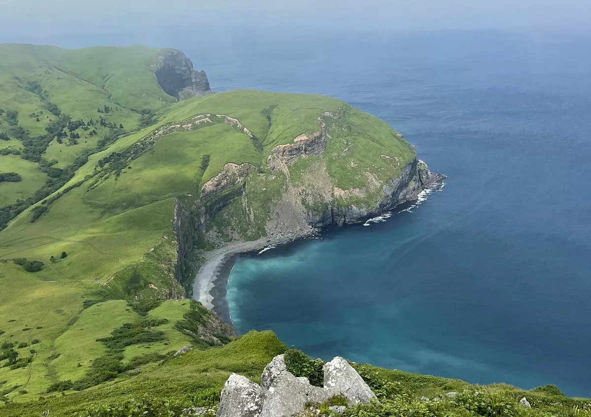 Но до парома мы проведем день на острове и сходим к самой верхней точке Шикотана, откуда в ясную погоду открывается обзор на остров и виды на соседние острова Кунашир и Итуруп.