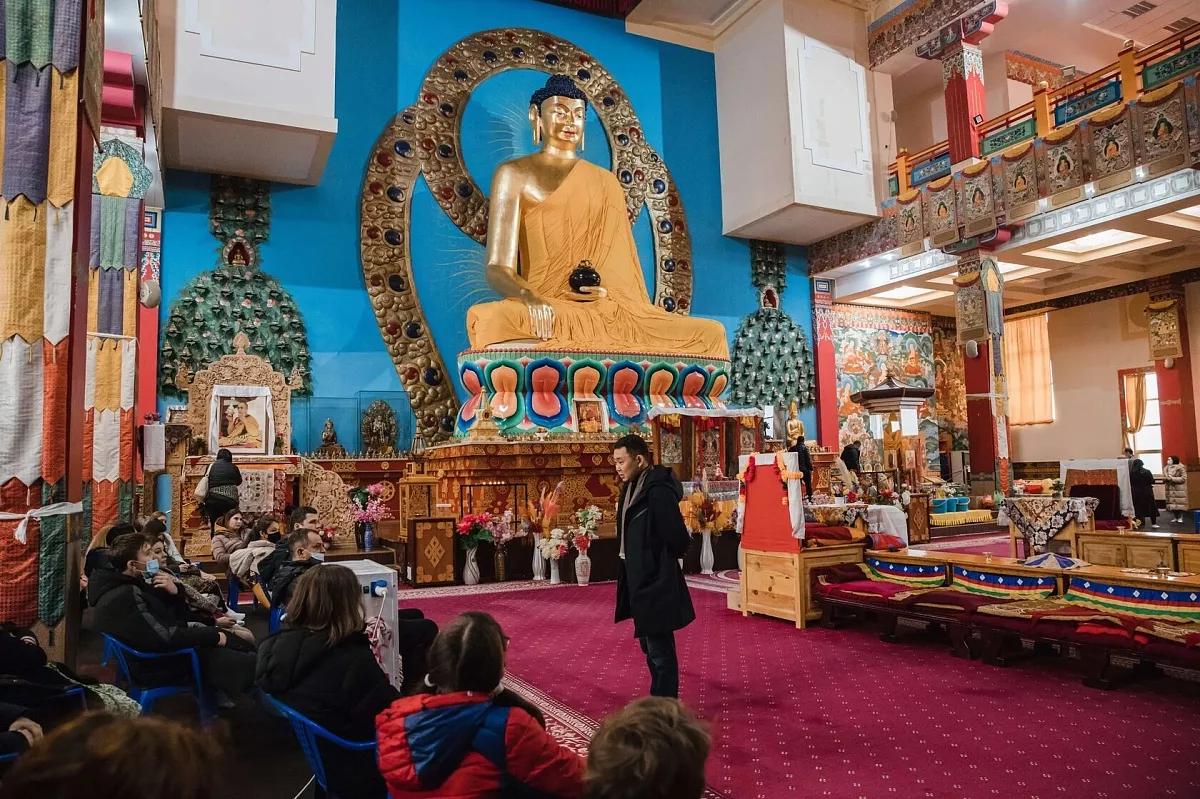 - Знакомство с религией местных — буддизмом: посещение молебна в самом большом в Европе буддистском храме