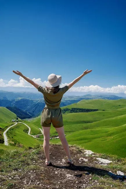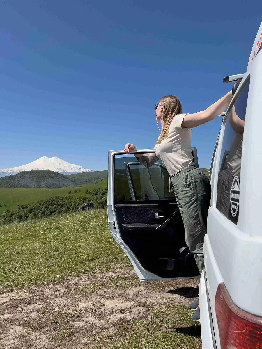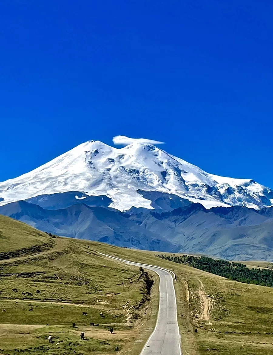 После источников мы поедем на одну из самых красивых дорог в России. Возможно, вы видели кадры у любимых тревел-блогеров, которые бегут по дороге на фоне белоснежных вершин Эльбруса. Этот путь ведёт в урочище Джилы-Су. Обязательно сделаем такие же кадры на фоне горы.