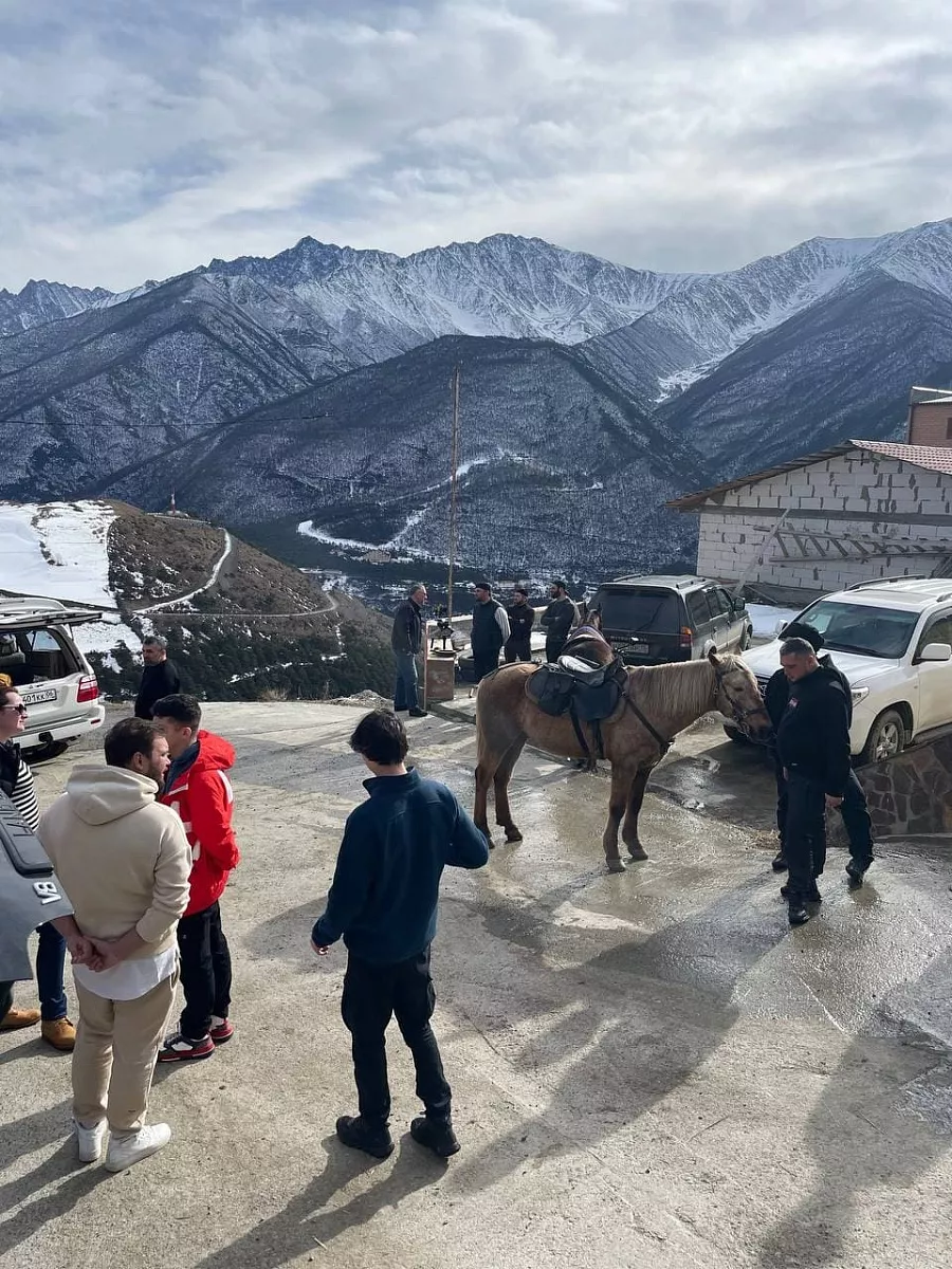 Третий день. Рано утром нас ожидала дорога в Грузию. Магомед, бывший военный, на своем комфортном минивэне Hyundai вёл нас через Кавказский хребет. Это было удивительное и комфортное путешествие: он рассказывал про реки, монастыри, крепости и башни. Остановка у Арки дружбы народов, Успенского собора в Ананури (XVII век) и некоторые другие достопримечательности сделали маршрут насыщенным. В дороге с нами — Мадина из Москвы, очень интеллигентная и приятная спутница. Поездка прошла быстро и безопасно.