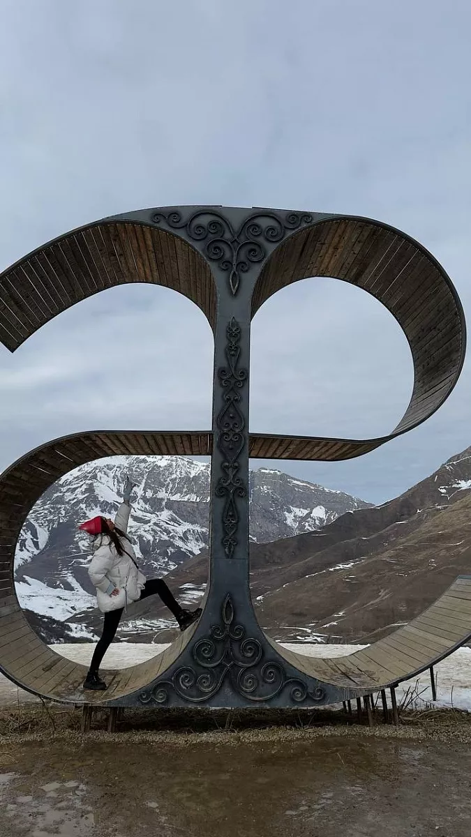 Третий день. Рано утром нас ожидала дорога в Грузию. Магомед, бывший военный, на своем комфортном минивэне Hyundai вёл нас через Кавказский хребет. Это было удивительное и комфортное путешествие: он рассказывал про реки, монастыри, крепости и башни. Остановка у Арки дружбы народов, Успенского собора в Ананури (XVII век) и некоторые другие достопримечательности сделали маршрут насыщенным. В дороге с нами — Мадина из Москвы, очень интеллигентная и приятная спутница. Поездка прошла быстро и безопасно.