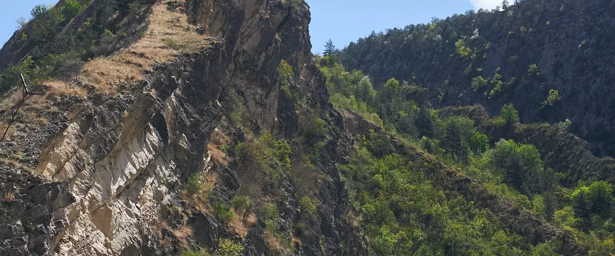 - Знаменитая зелёная ленточка Сулакского каньона, извиваясь между тесных скал, сверкая на солнце несет свои воды от плотины Чиркейской ГЭС до Миатлинской плотины.
