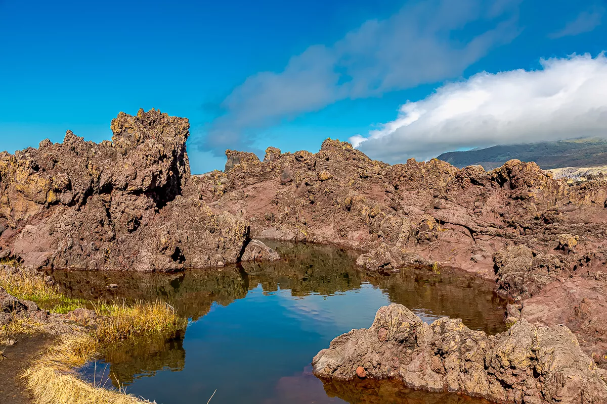 Мы приняли участие в индивидуальном туре, который включал в себя поход к трём вулканам и на Тятю. Нам не очень повезло с погодой, и на Тятю мы отправились почти в последний день. Внизу нас встретил густой туман, что сделало поход несколько мрачным, но несмотря на это, виды были просто потрясающими. Чёрное поле, покрытое шлаком, с мертвыми стволами, выходившими из тумана, создавало неповторимую атмосферу сюрреализма. Однако на половине пути туман рассеялся, и перед нами открылась абсолютно фантастическая картина: красный вулкан наверху и белый туман внизу. Это был один из тех моментов, которые непременно стоит увидеть в этой жизни.