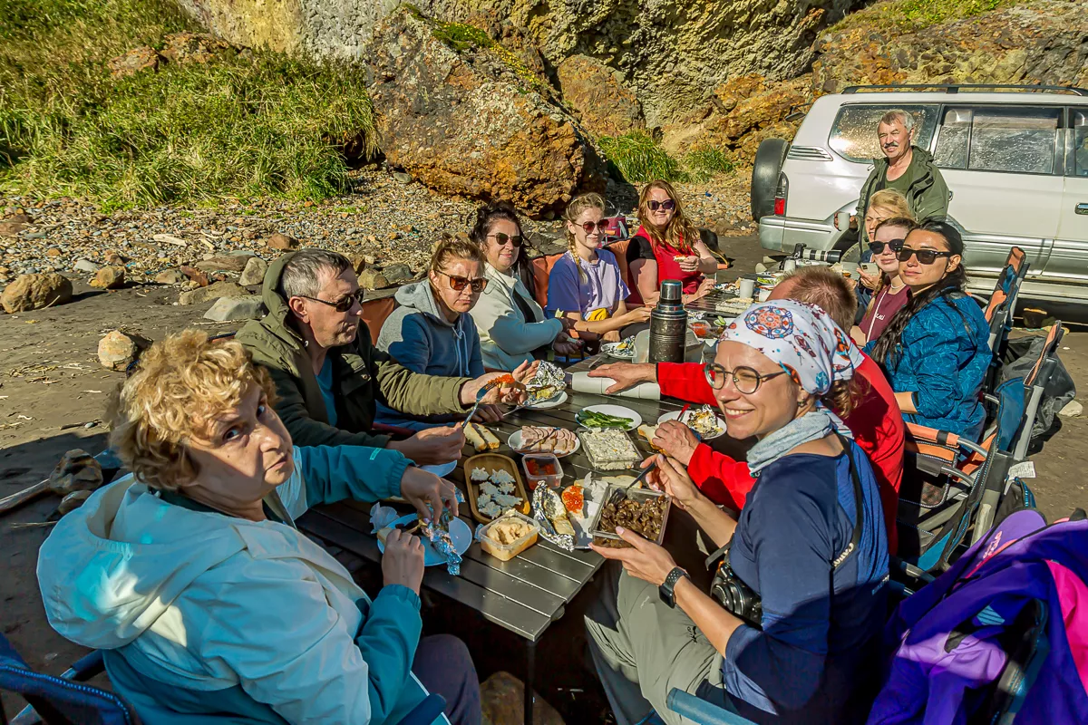 Особая гордость нашей программы – это внимание к гастрономии. Мы будем пробовать знаменитую курильскую икру, свежие морепродукты, приготовленные по местным рецептам, и салаты из дикоросов. А чтобы сделать моменты отдыха совершенными, мы поднимем бокалы шампанского на фоне невероятных видов.