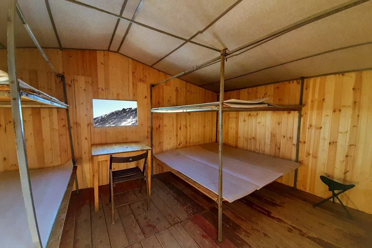 Переход к первым ледникам северного склона Эльбруса, в штурмовой лагерь на высоте 3800 м. Заселение в домики с кроватями.