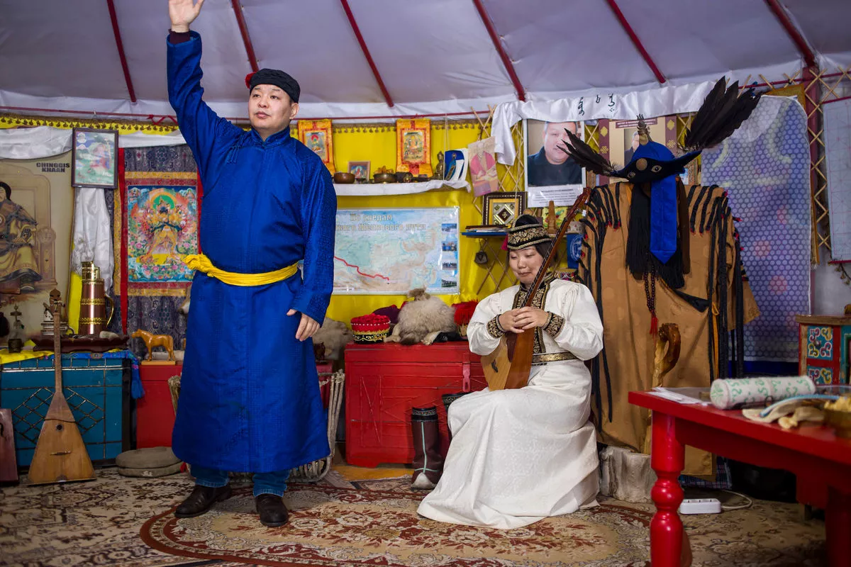 Рассказ о героическом эпосе Джангар, исполнение горловых композиций