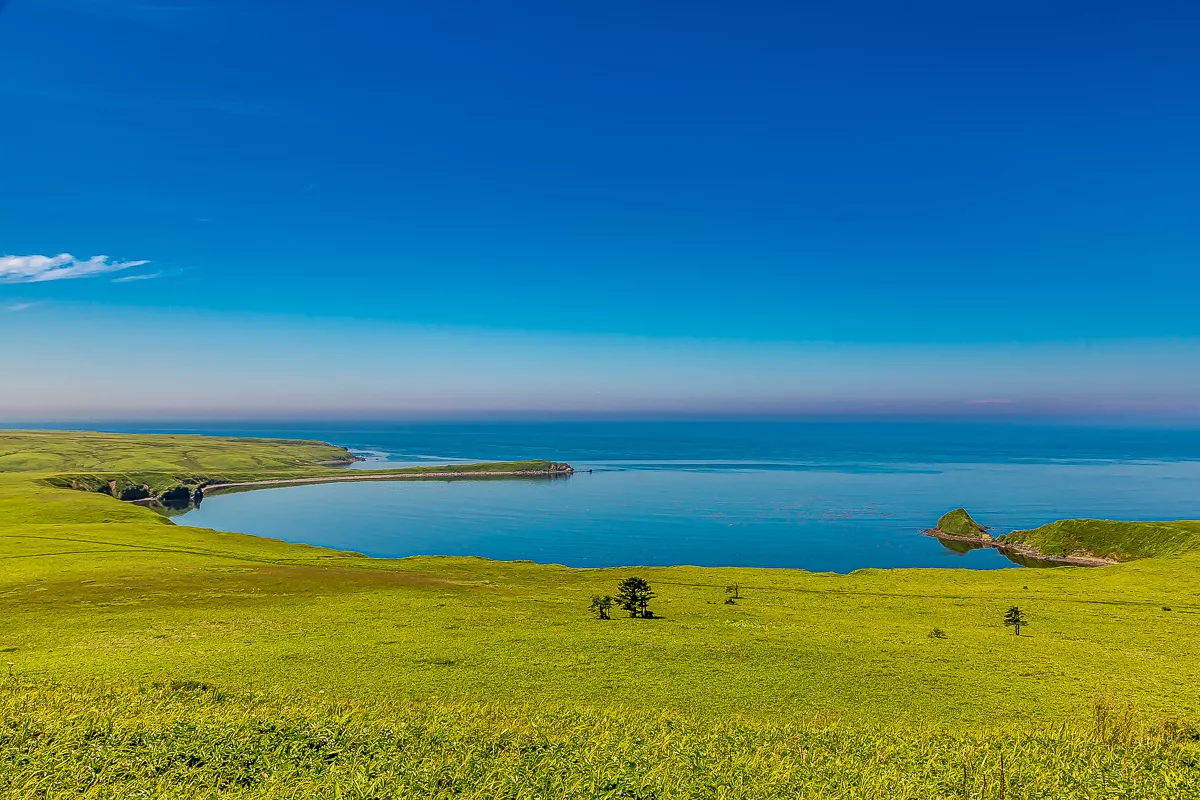 Мы проедем через весь остров и будем делать множество остановок в красивых местах. С вершин сопок, окружающих бухту, открываются очень красивые виды на широкие луга бамбучника, из которых торчат редкие сосны и березы. В некоторых местах вам захочется сделать круговую панораму.