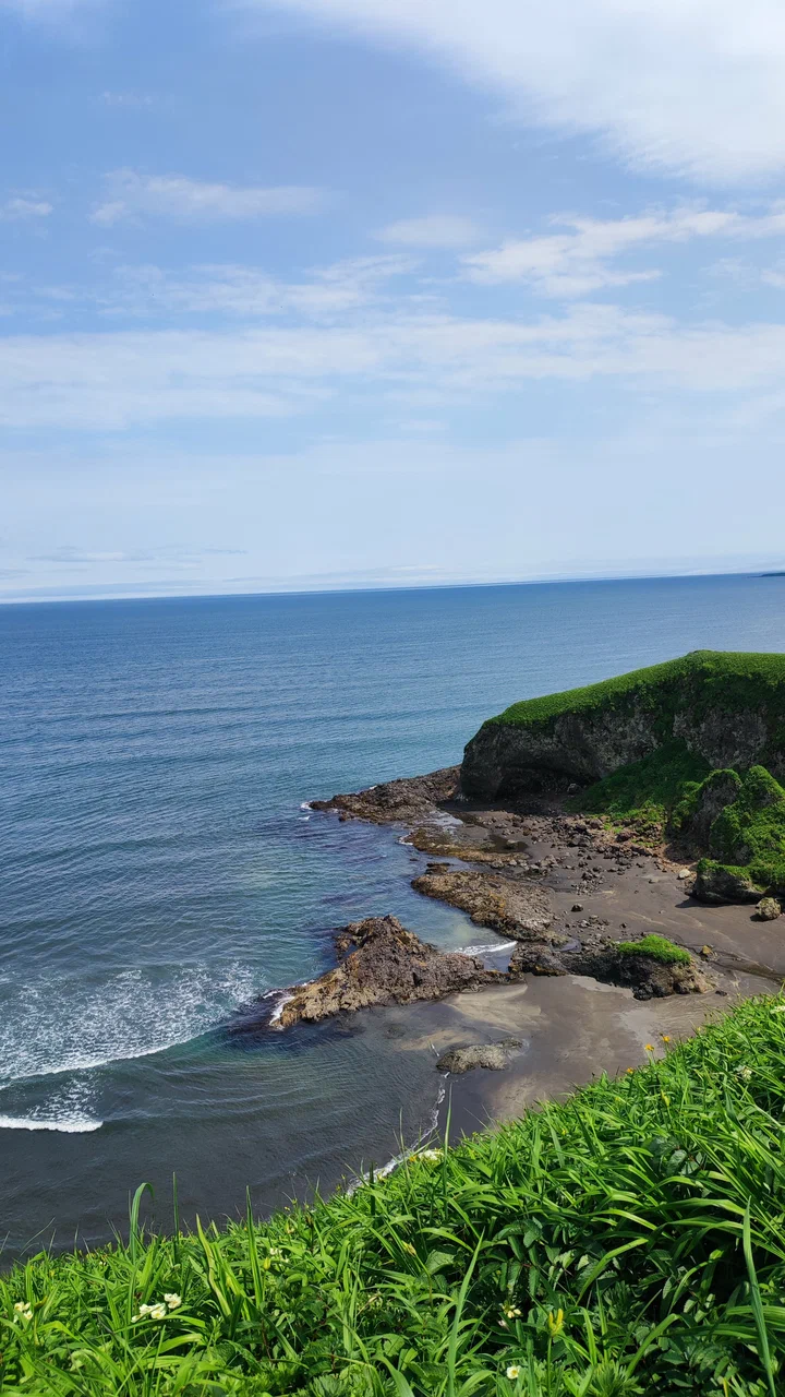 Сегодня мы посетим визитную карточку острова Шикотан Мыс Край света. Длинный язык скальной породы вдается далеко в океан. Стоя на конце мыса, видны только безбрежные просторы Тихого океана. Ближайшая земля впереди Северная Америка. Пройти на край мыса сложно, но возможно.