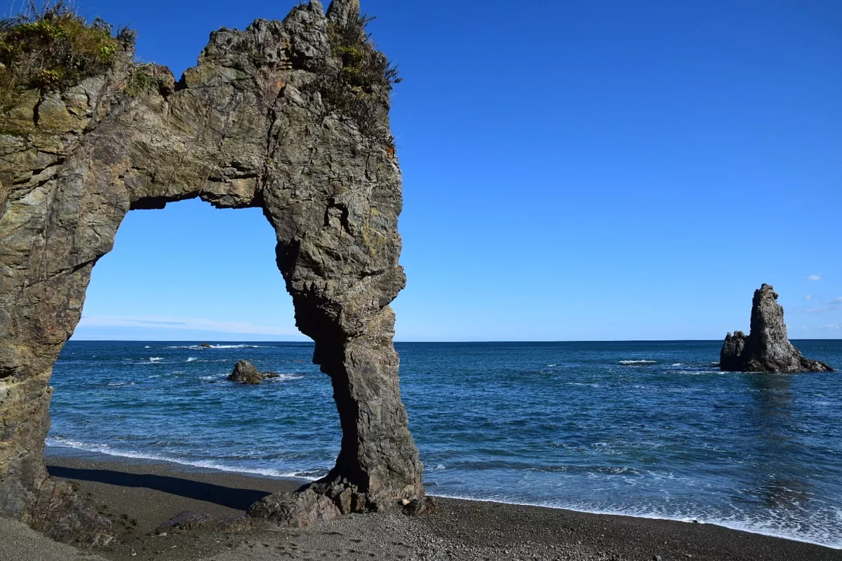 Этот день богат на локации, мы посетим Янтарный берег, ворота Тории, крабовый рынок, водопад Клоковский и бухту Тихую. Проедем на север от Южно-Сахалинска по одной из самых красивых дорог России.
