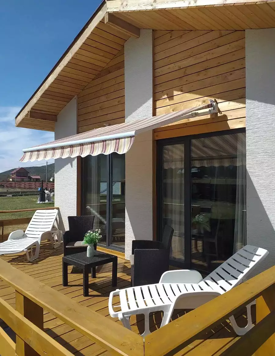 Ближе к вечеру мы доезжаем до нашего села Ак-Коба. Там нас ждет комфортное размещение в укромном глэмпинге на берегу реки, горячий ужин и жаркая банька.