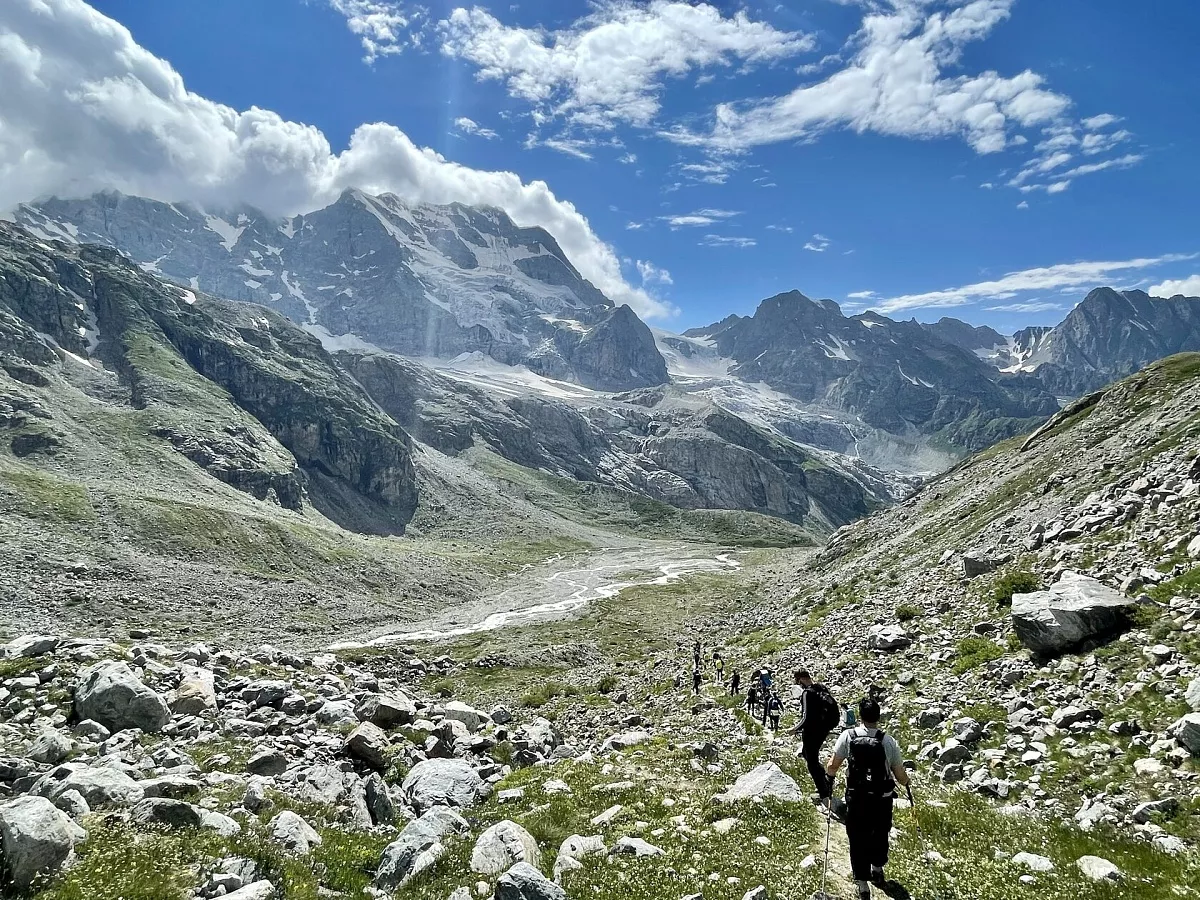 Утром встречаемся на завтраке прямо в отеле около 8.00. Если кому-то нужно зайти в прокат и взять необходимы для программы вещи, то обязательно сделаем это перед выездом! А далее отправимся на трансфере до с. Эльбрус, откуда направимся в ущелье АдылСу. От АдылСу поднимаемся пешком по ущелью Шхельда. Увидим настоящие ледники, горные реки и снежные вершины окружающих нас гор.