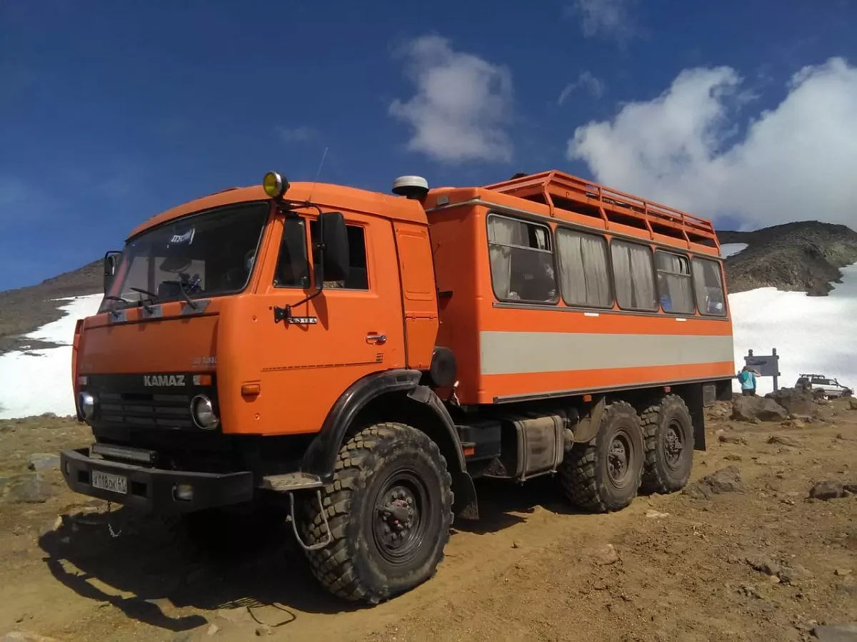 7:30* Выезд к вулкану Горелый на машине повышенной проходимости КАМАЗ.