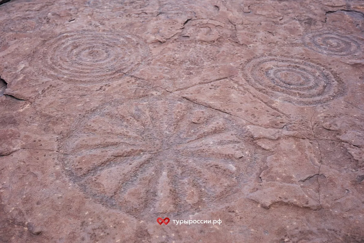 - Экскурсия на Первый Сундук - наиболее красивый и значимый в гряде в обрядовом и астрологическом смысле. В советское время в этой местности при распашке поля случайно трактором вскрыли могилу шамана. Тогда был выкопан камень, на котором изображены созвездия другого полушария и некоторые звезды, видимые чуть ли не в телескоп.