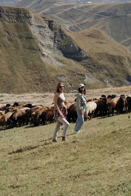 Горная ферма с барашками, лошадьми, утками. Здесь жизнь такая настоящая.. живая. И вы среди нее: гуляете с животными в невероятных пейзажах, вас угощают домашним хинкалом, лепёшками, теплом и смехом