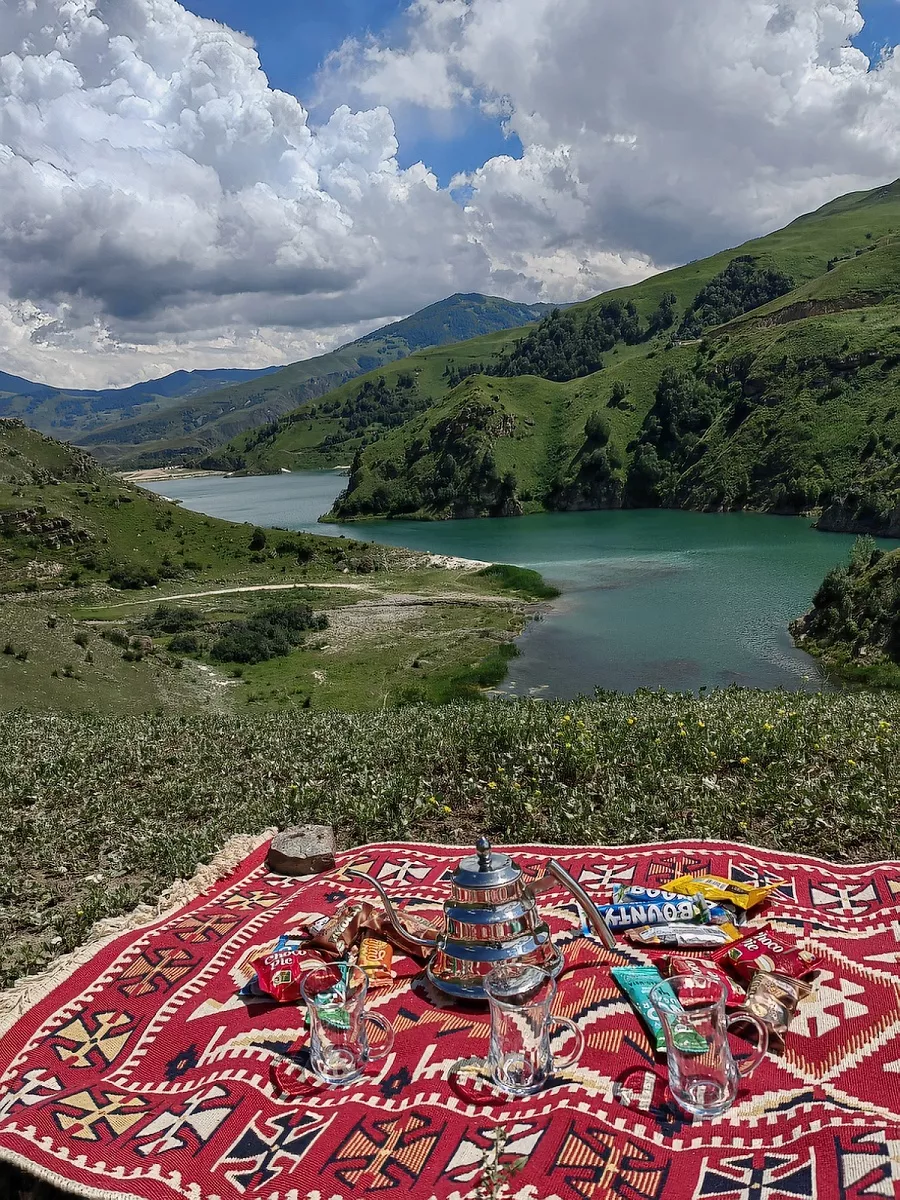 Сегодняшний день проведём в достаточно спокойном режиме - отправимся на автомобиле к горному озеру Гижгит, где устроим небольшой пикник с самоваром и прямо на природе.