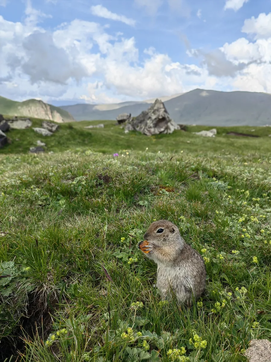 Здесь мы познакомимся с настоящими дикими сусликами, которые снуют по полянке вокруг.