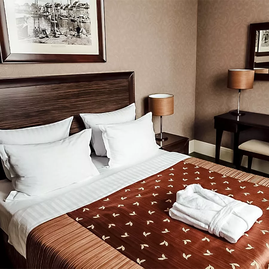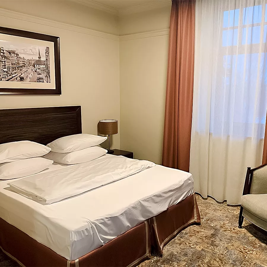 Встречаем Вас в аэропорту, организуем трансфер до отеля 4*, расположенного в престижной исторической части Калининграда элитном районе старого Кёнигсберга Амалиенау. Интерьер отеля дают возможность почувствовать атмосферу старого Калининграда и жизнь немецкой аристократии.
