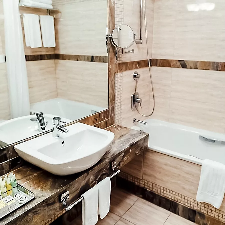 В номере Вас будет ждать комплимент: бутылка игристого с фруктами, чтобы расслабиться после перелета и настроиться на красивый и яркий отдых!