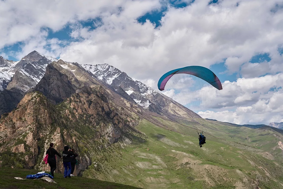 -Парадром Чегем уникальное место в горах, где вы сможете, по желанию, полетать на параплане и поесть вкусных хычинов с травяным чаем в окружении красивых гор.