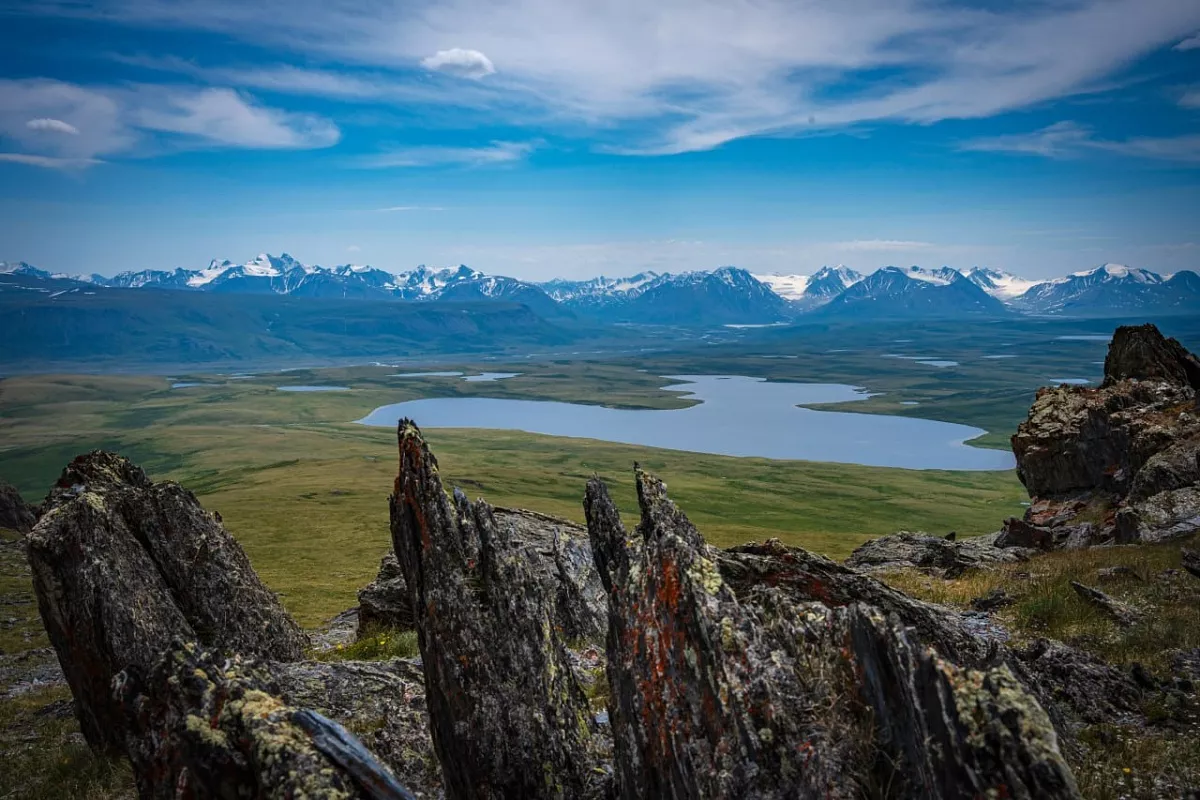 В этот день мы направимся к озеру Кальджин-Коль Бас оно является одним из крупнейших водоемов на плато Укок. Расположено озеро на высоте 2405 метров над уровнем моря и протянулось с запада на восток почти на 3,8 километра и на 2 километра с севера на юг.