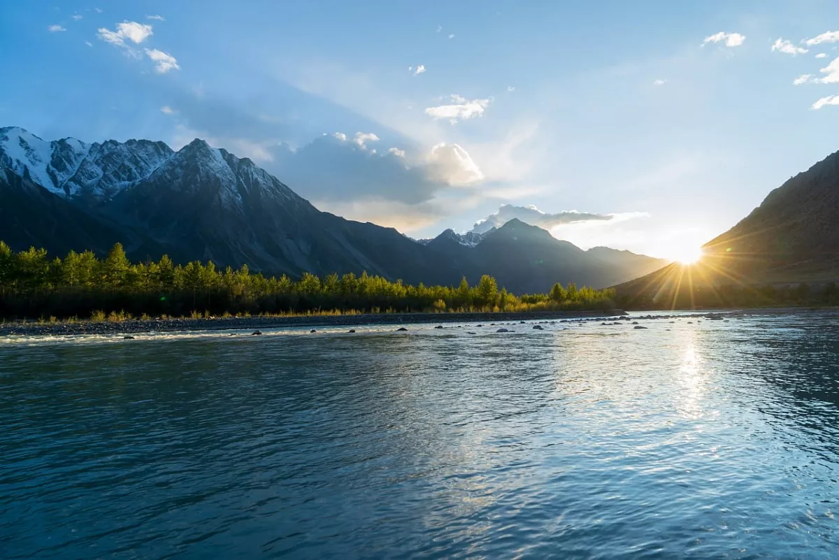 Лагерь расположим на берегу р. Кальджин с видом на 5 священных вершин г. Таван-Богдо-Ула.