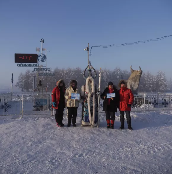 11:00. Приезд в село Оймякон. Получение сертификатов о посещении села Оймякон Полюс Холода.