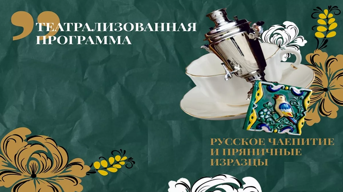 Театрализованная программа "Русское чаепитие и пряничные изразцы" это погружение в традиции русского чаепития и народных промыслов, где гости не только пьют чай из самовара, но и погружаются в историю и символы через игру и экскурсионную программу, узнают традиции, обычаи, угощаются традиционными сладостями, узнавая при этом о культурных особенностях.