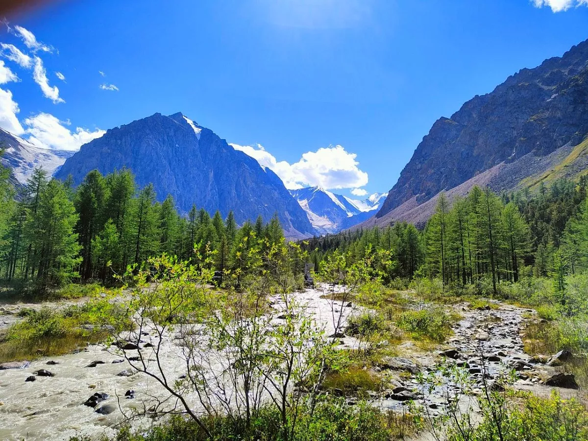 09:30 Заброска на Газ-66 или уаз буханка в альп. лагерь Актру на высоту крайней границы леса 2000 м. Дорога здесь понятие крайне условное, поэтому наберитесь терпения и прихватите леденцы ;). Из Курайской степи мы попадем в горную долину, где горы постепенно будут сходиться, а мы будем все выше, высадка практически у ледников!
