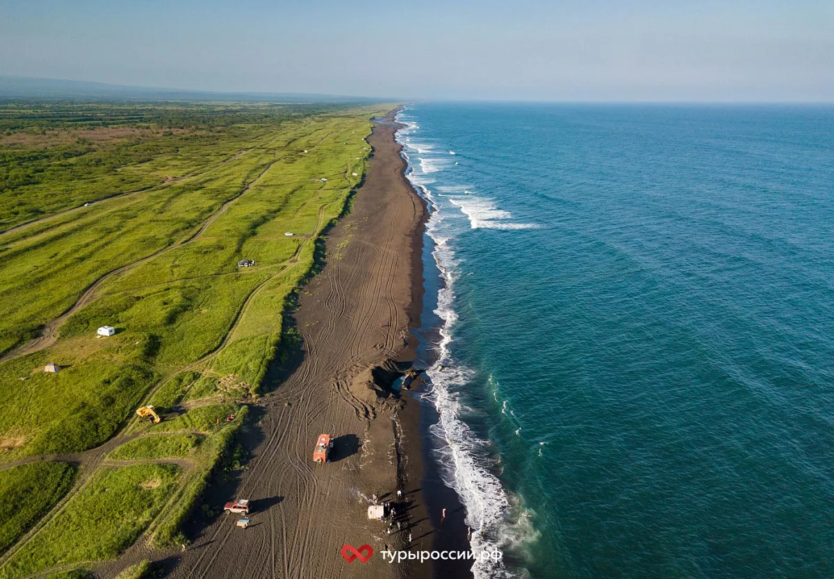 Экскурсия к Халактырскому пляжу с черным вулканическим песком (побережье Тихого Океана). Невероятно популярное место как у местных жителей, так и у туристов, в котором можно ощутить себя на краю света. Посещение визитной карточки Камчатки - памятника "Здесь начинается Россия".