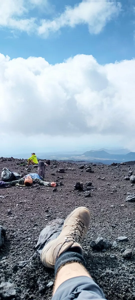 Подъем на один из конусов Северного прорыва конус Горшкова (около 300 м, 30-40 минут), откуда открывается завораживающий вид на последствия сильного извержения 1975 года. Конус до сих пор горячий мы ощутим его тепло у себя под ногами!