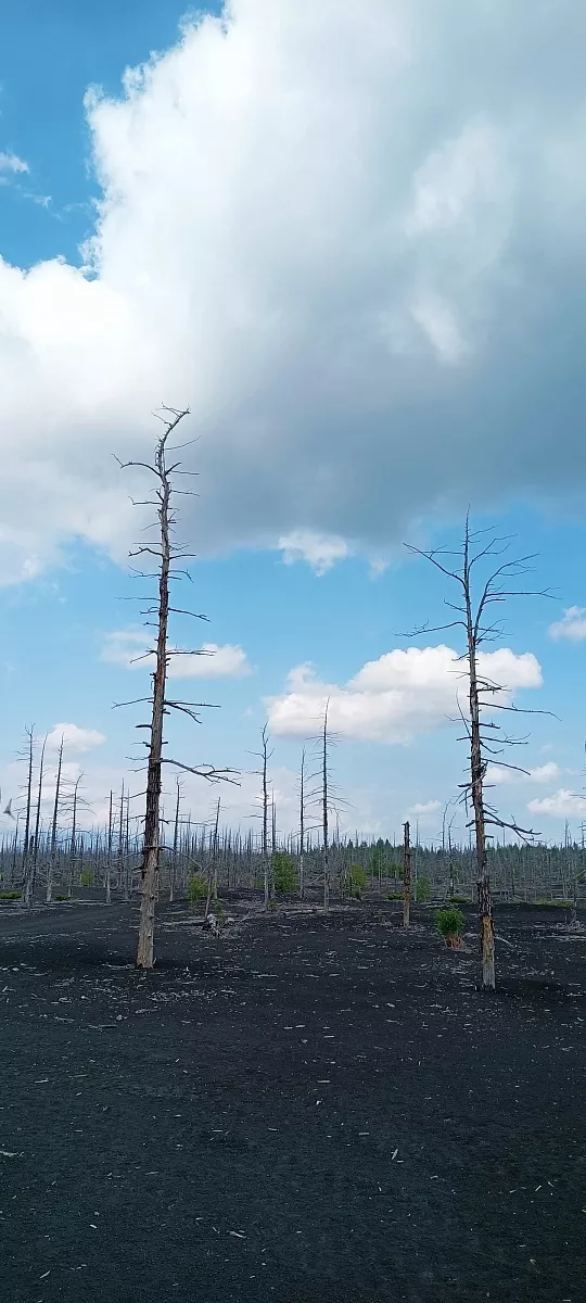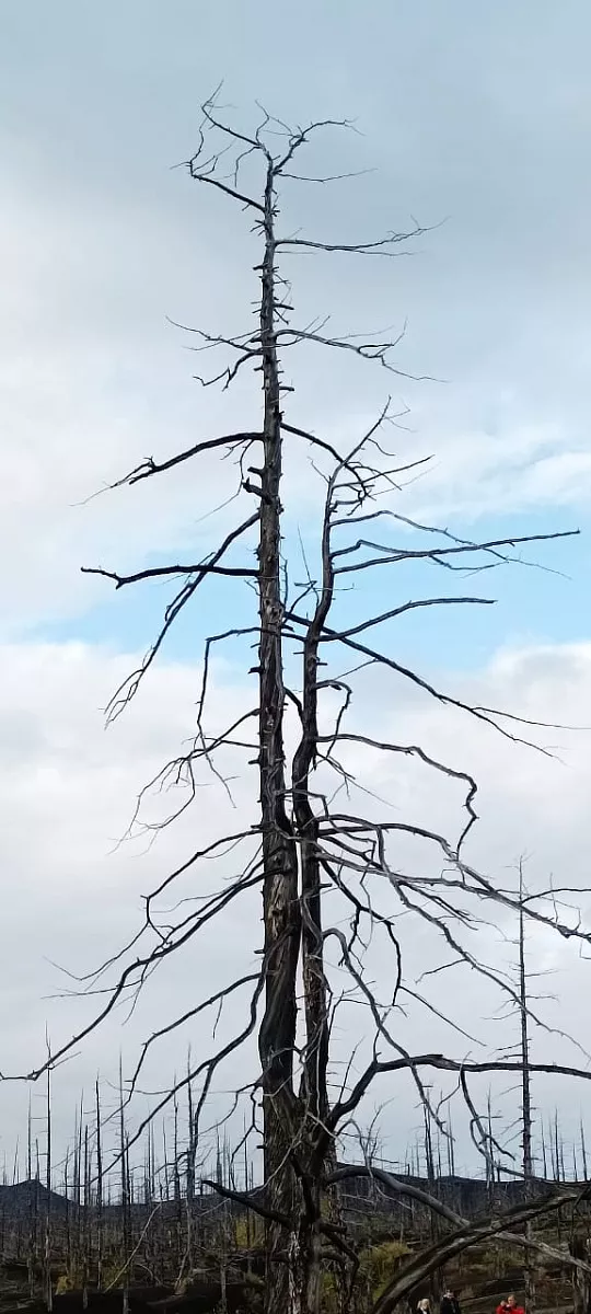 Некогда богатые пастбища и вся растительность в радиусе нескольких километров были уничтожены. Эти места получили мрачное название Мертвый лес, где высохшие верхушки деревьев виднеются из-под 7-метрового слоя шлака.