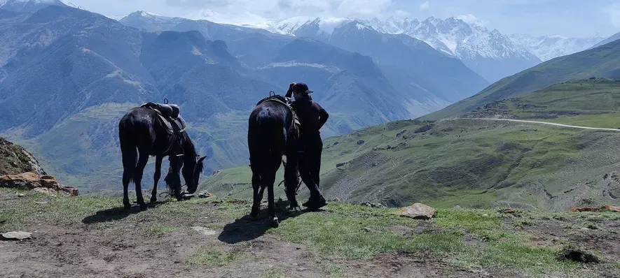 Впечатлившись романским стилем мы поедем на место, созданное природой - Язык Тролля. Это скальный выступ, расположенный в Безенгийском ущелье Кабардино-Балкарской Республики. Усевшись на нём, вы сможете сделать запоминающиеся кадры на фоне гор пятитысячников на отвесной скале. Такие эмоции уверены, разыграют аппетит, поэтому, спустившись вниз, мы заглянем в гости к местному жителю Али, который вместе со своей семьей приготовит нам национальные блюда из местных эко продуктов: хычины. Если не будет ветра, то подкрепимся поплотнее шашлыком.