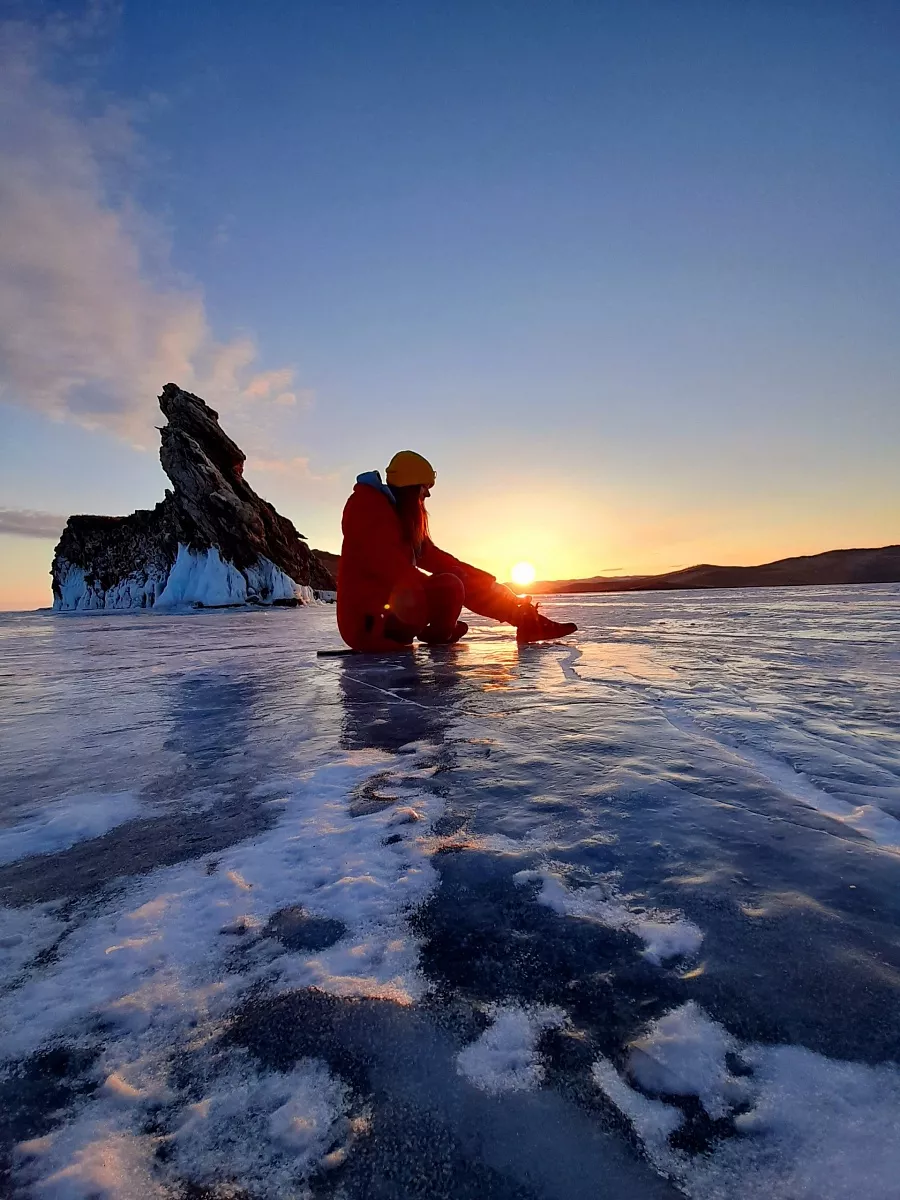 17:00 Идем встречать закат на священный мыс Бурхан (скала Шаманка), который является домом великого духа Байкала Шаманка входит в семь святынь Азии. Здесь же можно сделать подношение духам у священных столбов сэргэ. А после заката можно вновь отправиться на лед с гирляндой или свечами, чтобы сделать еще магических снимков!
