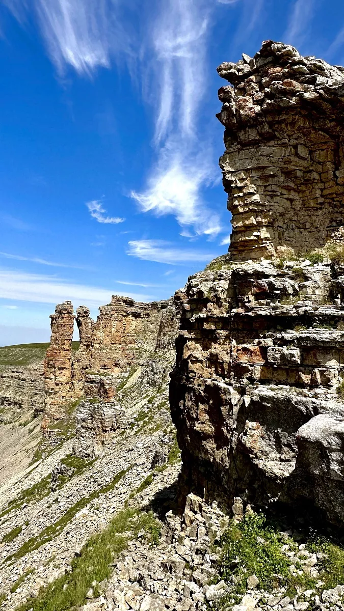 Выезд на плато Бермамыт - одно из самых выразительных высокогорных плато Приэльбрусья, покрытое альпийскими лугами. Желто-красные породы образуют каньоны, каменные выступы и отдельные скальные башни.