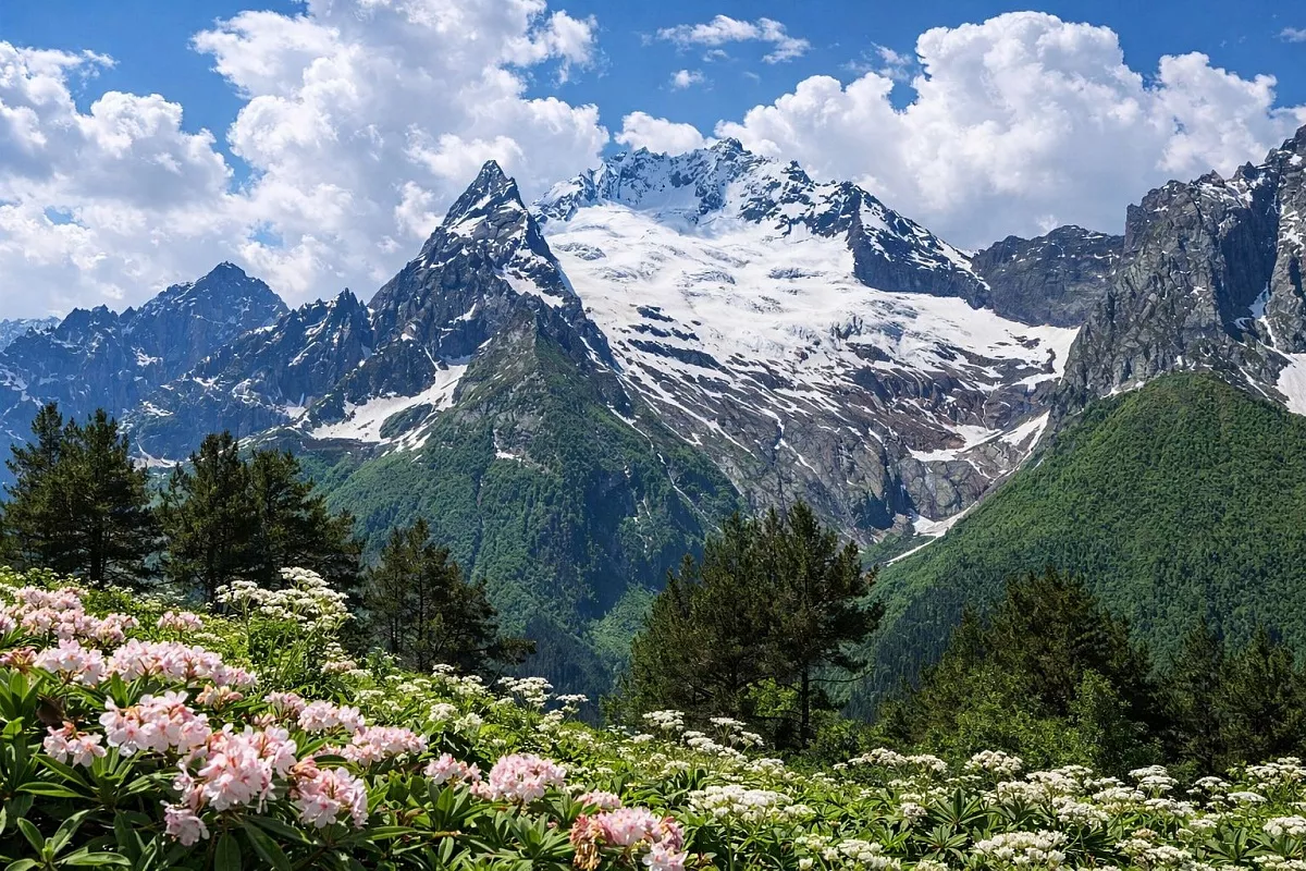 Далее переезд через перевалы в Карачаево-Черкесию. Домбай и Тебердинский национальный парк: ущелья, водопады, высокогорные озёра.