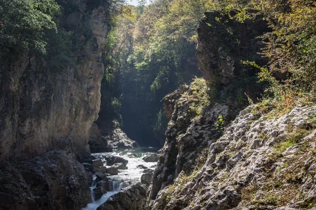 Пеший маршрут по ущелью Мишоко, но уже по низу ущелья там нас ждут водопады, гроты и пещеры, они не оставят равнодушными даже самых заядлых туристов. В теплое время года пройти можно прямо по горному ручью, по колено в освежающей чистой воде. После ущелья, при желании, у самых активных туристов будет возможность посетить экстрим-парк, пролететь на троллее над ущельем со скоростью до 50 км/час и покорить скальный маршрут. Стоимость экскурсии в Ущелье Мишоко -бесплатно. Во время экскурсии по ущелью Мишоко, у Вас будет прекрасная возможность посетить экстрим парк Мишоко, где находится самый длинный зиплайн в Адыгее, протяженность полета над ущельем около 700 метров, глубина ущелья 180 метров. Маршрут состоит из двух перелетов над ущельем Мишоко, а так же подъемом по виа-феррате (оборудованный скальный участок высотой около 60 метров). Стоимость данного аттракциона - от 2000-3000 руб с человека (Все зависит от выбранного Вами маршрута, более легкого или более сложного). Так же вы можете покататься на "Парящих качелях", которые находятся на обрыве ущелья, катание происходит со страховочной системой. Стоимость качелей - 500 руб.