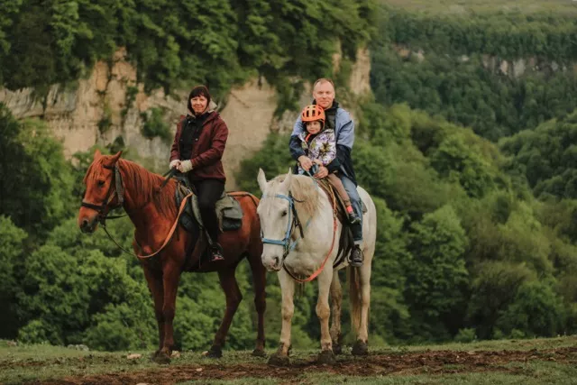 Конная прогулка в седле на 1,5 часа по маршруту Ущелье Мишоко и старые черкесские сады. Во время прогулки мы используем один вид конного аллюра - шаг. Движение верхом будет спокойным, медленным - скорость приблизительно 4-5 км/ч. Пройдем на лошадях по верху ущелья с живописными видами, далее сквозь старые черкесские сады, через речку и дубовую рощу выйдем к началу маршрута. Получаем удовольствие от активного отдыха, умеренной физической нагрузки и наслаждаемся видами. ВАЖНО! Ограничение по весу туриста не более 95 кг. При превышении весового ограничения, либо отказе туриста от конной прогулки по другим причинам замена экскурсии не предоставляется. Конная прогулка 1,5 часа вдоль ущелья Мишоко. (Удобная обувь!!! Вес до 95 кг! ) Стоимость конной прогулки 2500 руб с человека.