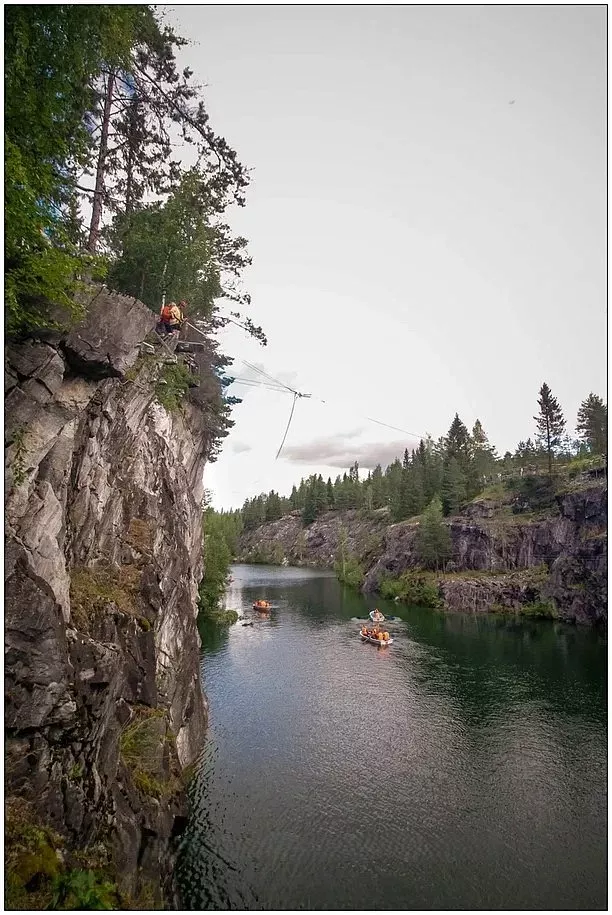 Групповая наземная экскурсия в горном парке Рускеала. Старый и заброшенный карьер добычи камня, разрабатывавшийся почти три столетия, сегодня обустроен для посещения туристов. Вы увидите уникальное творение - огромную чашу, вырубленную руками человека в массиве мраморного пласта, которая простирается с севера на юг на 456 м, а ее ширина - 109 м. Прогуляетесь вдоль необыкновенного озера, которое обрамлено пологими и отвесными скалами из светло-серого мрамора, достигающими высоты 25 м над зеркалом воды.