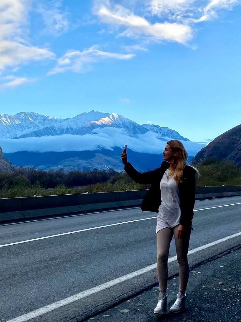 Третий день. Рано утром нас ожидала дорога в Грузию. Магомед, бывший военный, на своем комфортном минивэне Hyundai вёл нас через Кавказский хребет. Это было удивительное и комфортное путешествие: он рассказывал про реки, монастыри, крепости и башни. Остановка у Арки дружбы народов, Успенского собора в Ананури (XVII век) и некоторые другие достопримечательности сделали маршрут насыщенным. В дороге с нами — Мадина из Москвы, очень интеллигентная и приятная спутница. Поездка прошла быстро и безопасно.