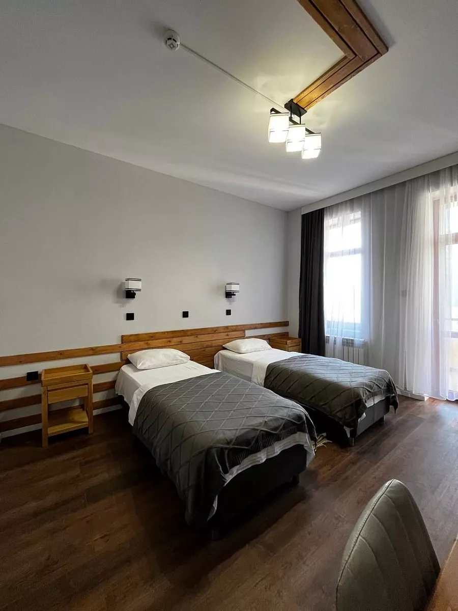 После экскурсии мы отправились в Джейрахский район, где нас разместили в отеле-курорте "Армхи". Номера стандартные, с минимальным комфортом, но виды из окна и на балконе — великолепные: окруженные горами. В порученных близости канатная дорога и подъем на гору Столовая (обход стоимости — 400 руб. туда и обратно, около 16 минут). Обнаружили проблему с номером — батарея не грела, но утром его быстро исправили. Заявленный полу‑пансион не полностью реализовался: ужин стоил 900 руб. с человека, а мы так и не смогли понять, включен он или платный.