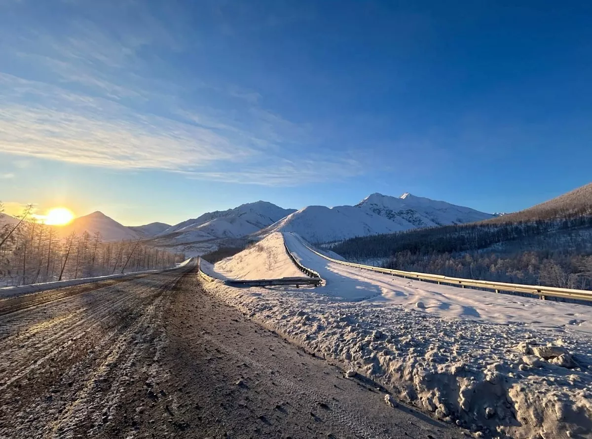 11:10 Приезд в село. Зимой темнеет рано, поэтому сразу поедем на снегоходах в маршрут охотника, где проверим капканы, силки и плашки. По пути встречаемся с хозяйкой реки Индигирка Индигир-Хотуном.