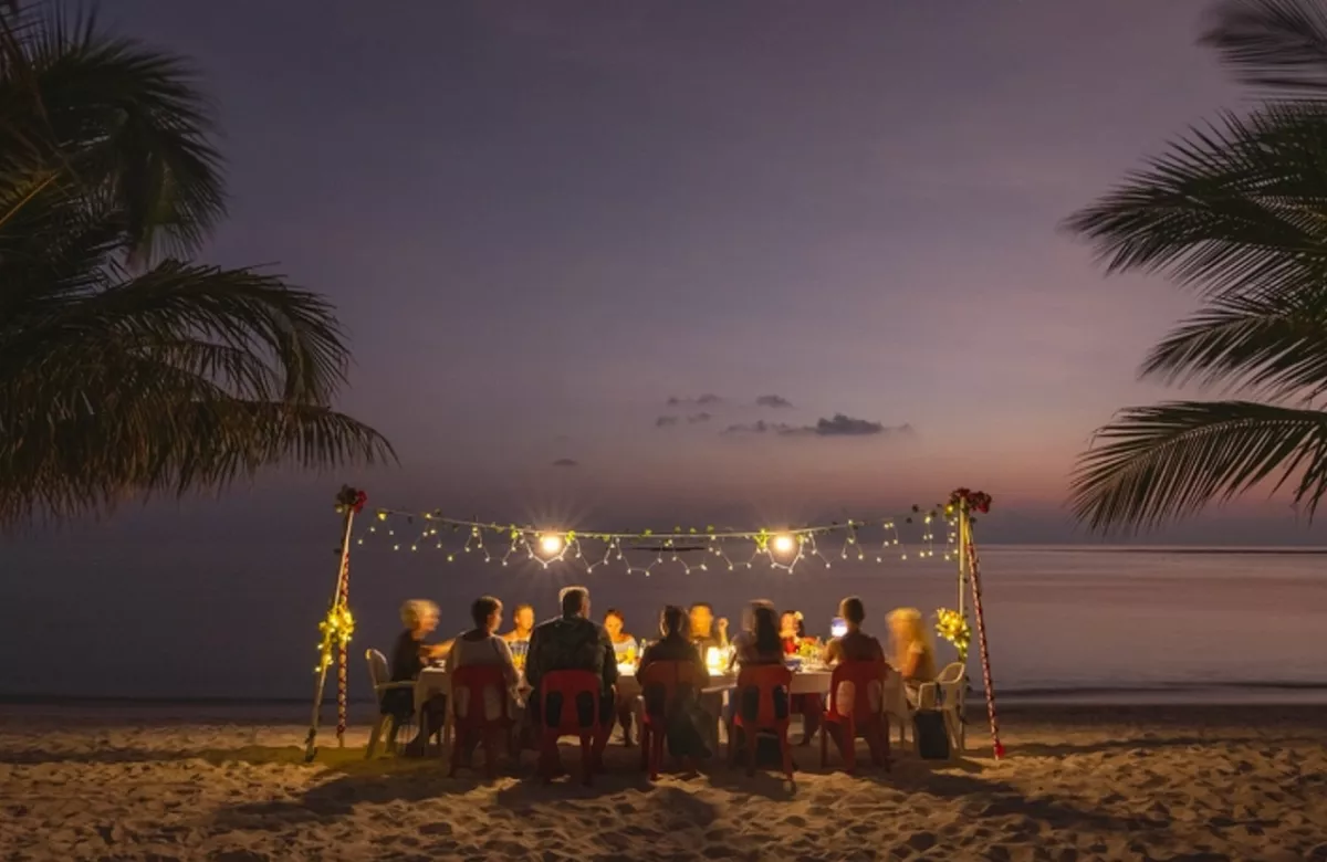 Включенный пакет питания: приветственный ужин на берегу океана