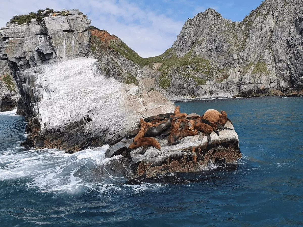 Затем мы возьмём курс на остров Старичков. Ещё на подходе вы услышите его: гомон тысяч птиц, создающих шумный базар, будет доноситься даже сквозь шум катера. Здесь вы увидите гнездовья морских птиц и лежбища тюленей, а также сделаете фотографии, которые достойны обложки National Geographic.