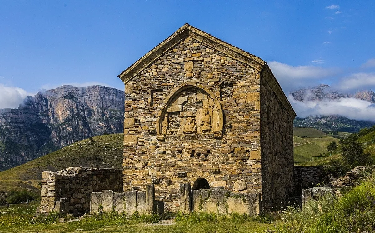 Знакомство с древнейшим христианским храмом России - Тхаба-Ерды в Ассинском ущелье, на правом притоке реки Ассы, недалеко от границы с Грузией. Построенный ещё в VIII веке, изначально был языческий. В XII веке на фундаменте этой постройки была возведена уже христианская церковь.