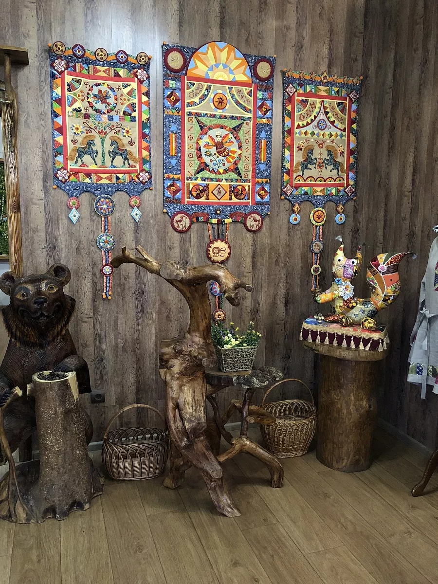 В костромских лесах хранятся предания древней старины, открыть стремится музей наш чудной красоты... На берегу реки Кострома, по улице Островского, стоит необычный Дом-сказка, который притягивает внимание жителей и гостей нашего города своим волшебным видом. На въезде в этот сказочный дом Вас дружелюбно встречает Мишка-Медведь, предлагающий окунуться в страну волшебства и таинственных приключений музея Лес-Чудодей. Зал 1. Лес кладовая природы. Вашему взору открывается первый зал музея - кладовая природы. Именно здесь складывается представление о лесных сокровищах: ведется занимательный рассказ о целебных и магических свойствах деревьев. Происходит знакомство с древними ремеслами, процветающими на нашей Богохранимой земле. А таковыми являются: резьба по дереву, плетение из ивового прута и художественная ковка. Зал 2. Мир лесных сказок. Продолжая знакомство с миром царственного леса, мы окунаемся в атмосферу лесных мифов, легенд, небылиц. Сплетенные ветви леса-чудодея охотно встречают гостей и как чародеи обволакивают, завораживают и манят к себе. Здесь живет Повелитель Пней, Пень-Выворотень, Леший, стоит избушка Бабы-Яги. Лесные птицы и звери сопровождают Вас в течение всего лесного путешествия. Зал 3. Магия природного материла и металла В этом зале персонажи славянских мифов и легенд оживают в металле. Кикимора, Водяной, причудливые бабочки, стрекозы и муравьи все это творенье умелых рук костромских кузнецов. Сочетания природных материалов восхищают и удивляют.