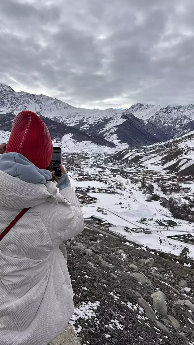 Третий день. Рано утром нас ожидала дорога в Грузию. Магомед, бывший военный, на своем комфортном минивэне Hyundai вёл нас через Кавказский хребет. Это было удивительное и комфортное путешествие: он рассказывал про реки, монастыри, крепости и башни. Остановка у Арки дружбы народов, Успенского собора в Ананури (XVII век) и некоторые другие достопримечательности сделали маршрут насыщенным. В дороге с нами — Мадина из Москвы, очень интеллигентная и приятная спутница. Поездка прошла быстро и безопасно.